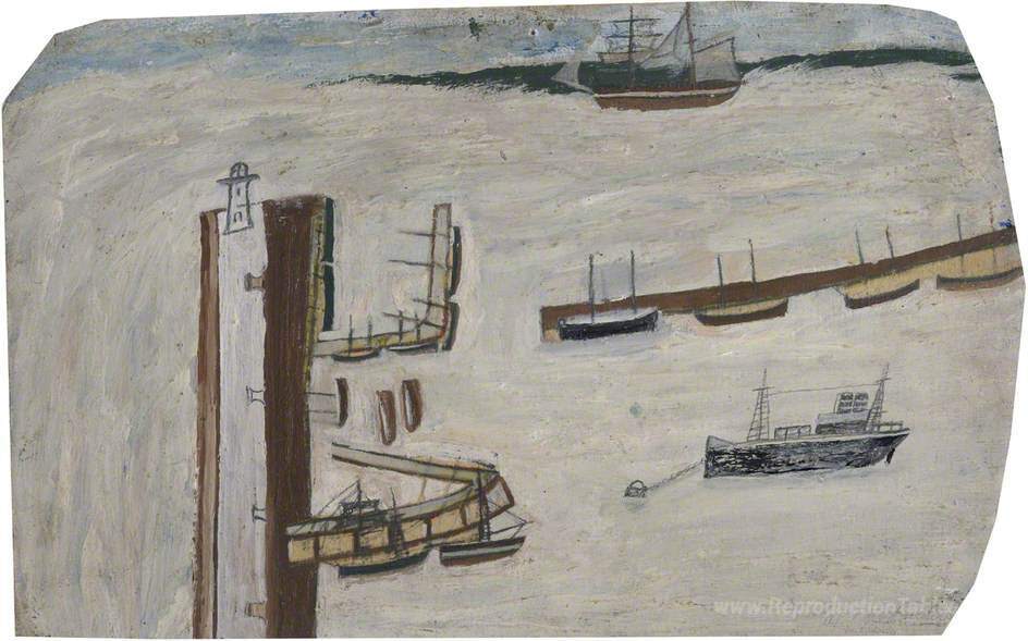 Nous vous proposons une reproduction artisanale sur toile du célèbre tableau 'Scène de port' de Alfred Wallis, provenant du Musée de la Reproduction.