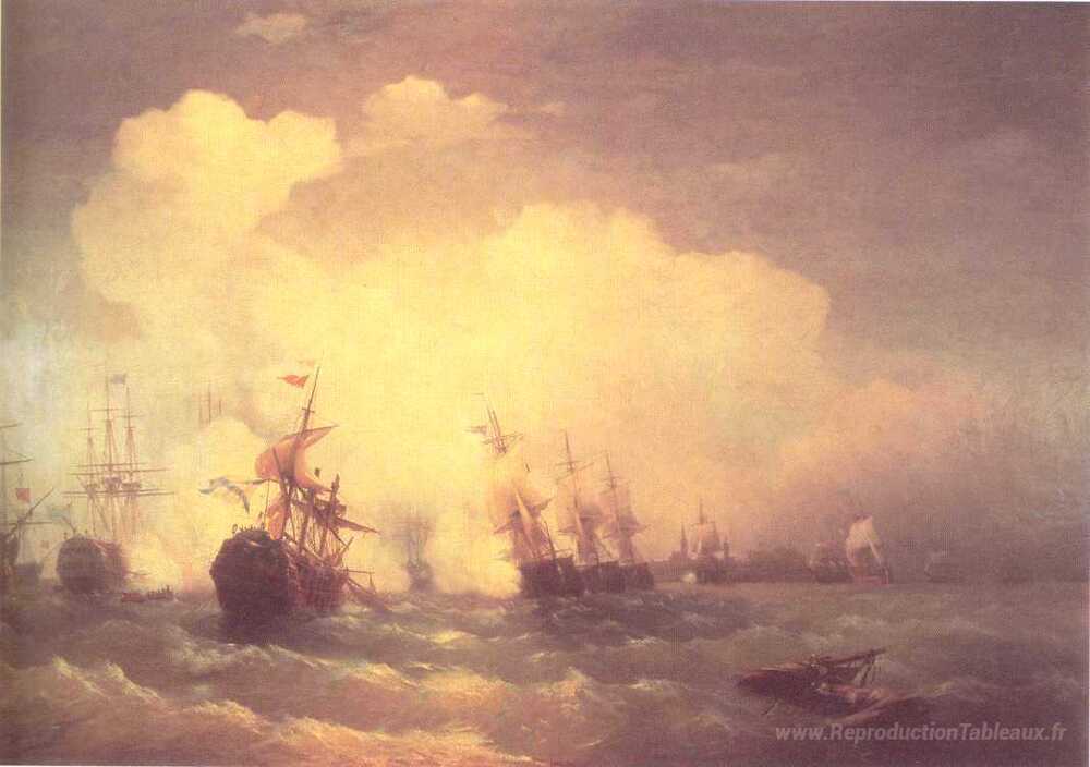 Nous vous proposons une reproduction artisanale sur toile du célèbre tableau 'Sea Buttle près de Revel' de Ivan Aivazovsky, provenant du Musée de la Reproduction.