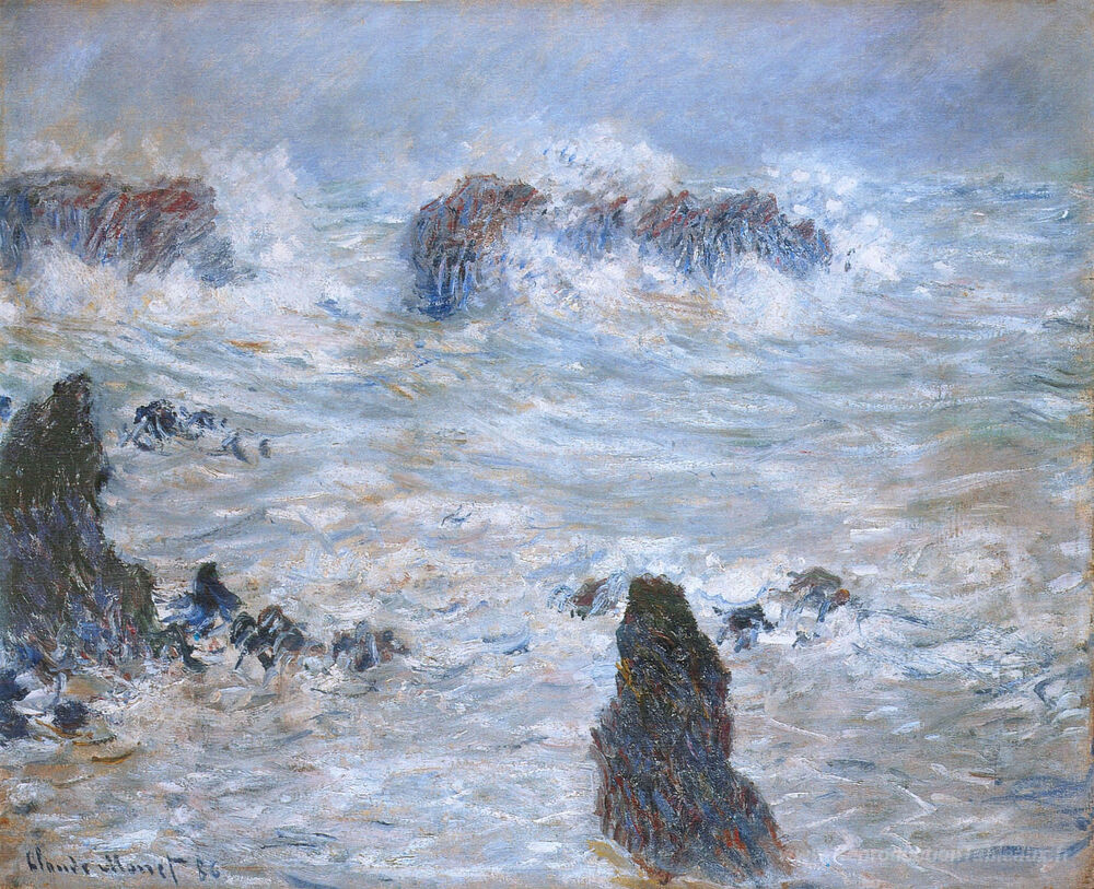 Nous vous proposons une reproduction artisanale sur toile du célèbre tableau 'Storm, au large des côtes de Belle-ile' de Claude Monet, provenant du Musée de la Reproduction.