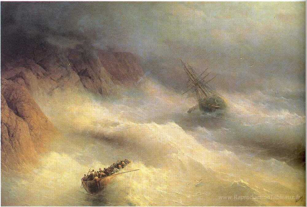 Nous vous proposons une reproduction artisanale sur toile du célèbre tableau 'Tempest par Cape Aiya' de Ivan Aivazovsky, provenant du Musée de la Reproduction.