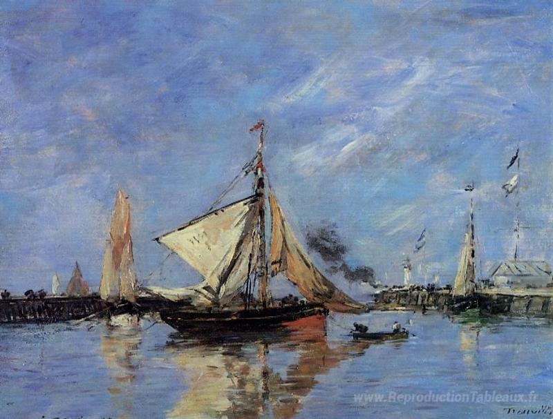 Nous vous proposons une reproduction artisanale sur toile du célèbre tableau 'Trouville, il Jettys, High Tide' de Eugene Boudin, provenant du Musée de la Reproduction.