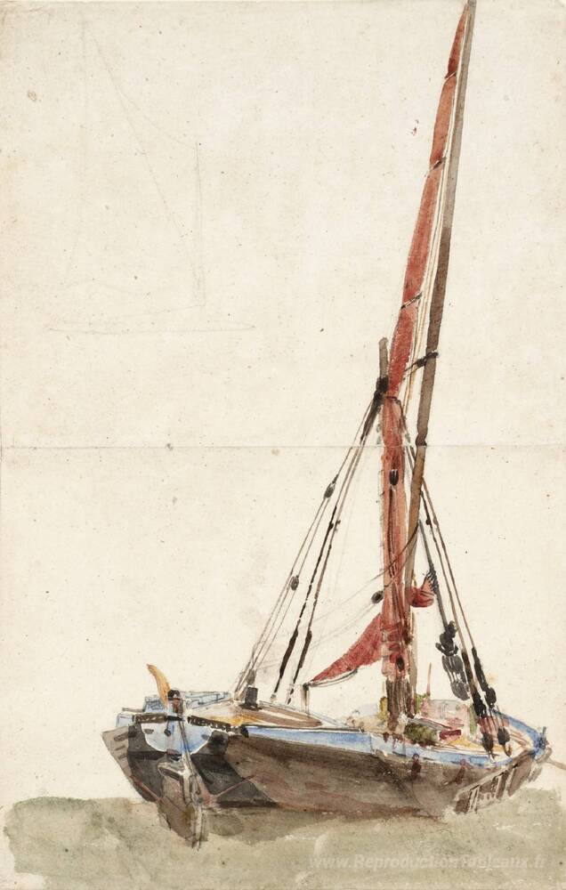 Nous vous proposons une reproduction artisanale sur toile du célèbre tableau 'Un navire' de David Cox, provenant du Musée de la Reproduction.