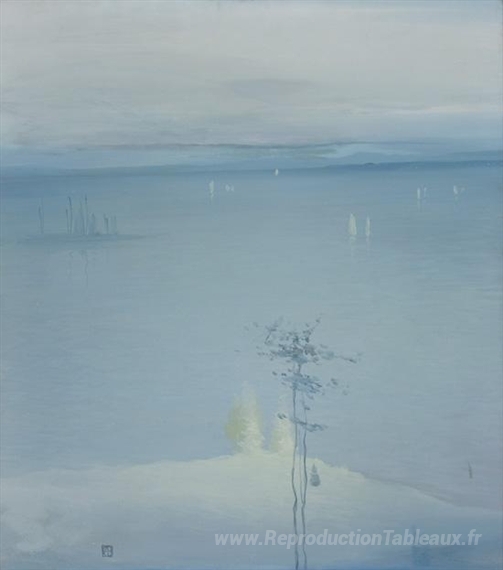Nous vous proposons une reproduction artisanale sur toile du célèbre tableau 'Voiles tranquilles' de Leon Dabo, provenant du Musée de la Reproduction.