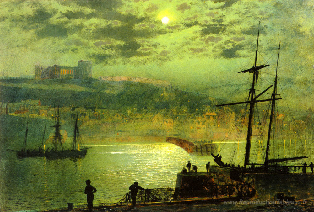 Nous vous proposons une reproduction artisanale sur toile du célèbre tableau 'Whitby de Scotch Head' de John Atkinson Grimshaw, provenant du Musée de la Reproduction.
