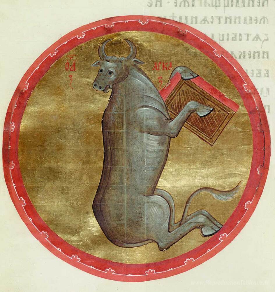 Nous vous proposons une reproduction artisanale sur toile du célèbre tableau 'Le veau de Saint-Luc' de Andrei Rublev, provenant du Musée de la Reproduction.