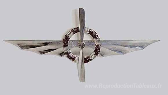 Nous vous proposons une reproduction artisanale sur toile du célèbre tableau 'Aile argentée avec couronne' de Gianni Piacentino, provenant du Musée de la Reproduction.