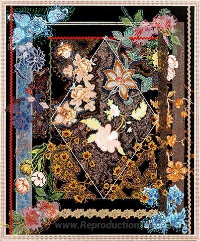 Nous vous proposons une reproduction artisanale sur toile du célèbre tableau 'Portes du paradis' de Miriam Schapiro, provenant du Musée de la Reproduction.