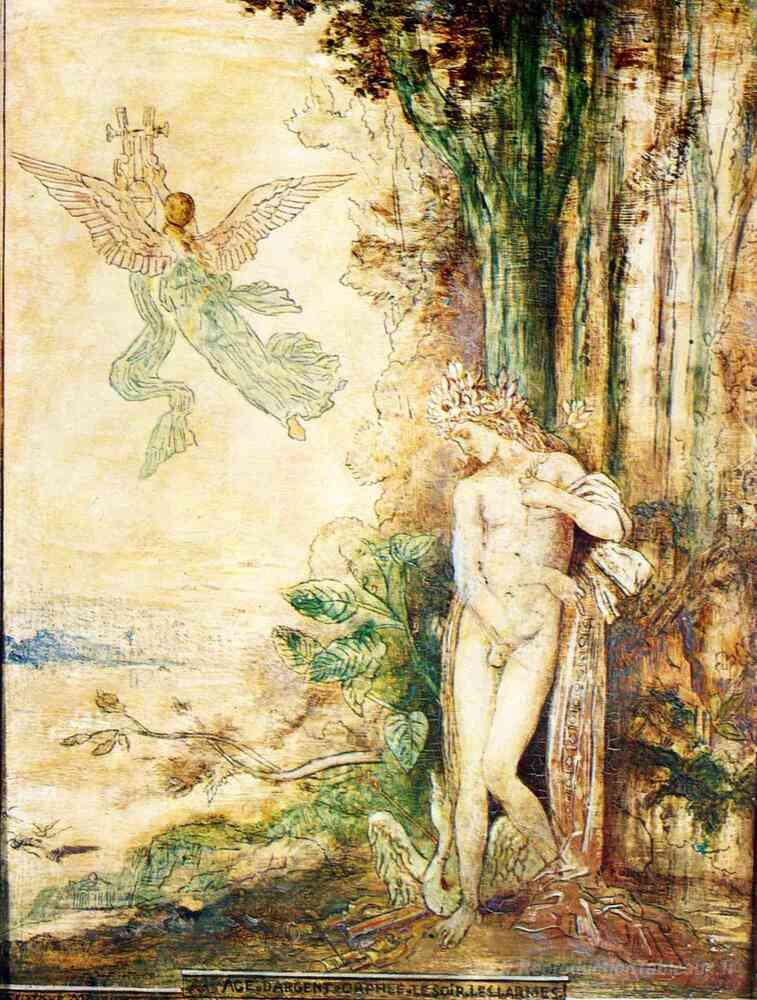Nous vous proposons une reproduction artisanale sur toile du célèbre tableau 'Âge de l'argent (Orpheus)' de Gustave Moreau, provenant du Musée de la Reproduction.