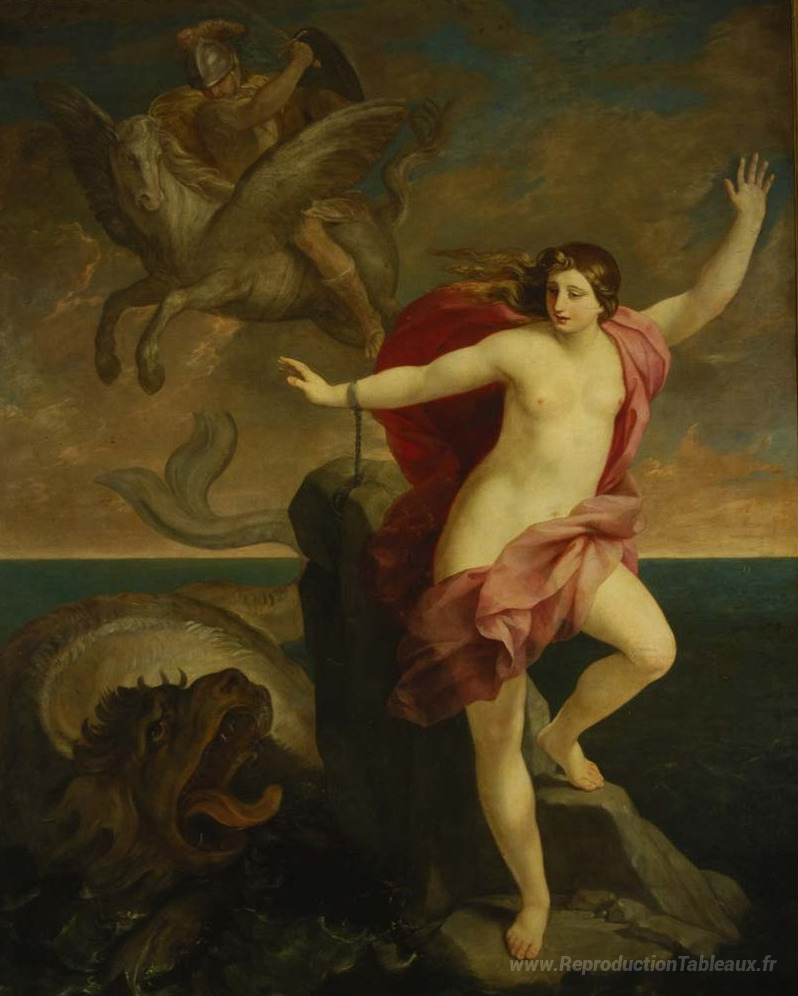 Nous vous proposons une reproduction artisanale sur toile du célèbre tableau 'Andromède' de Guido Reni, provenant du Musée de la Reproduction.