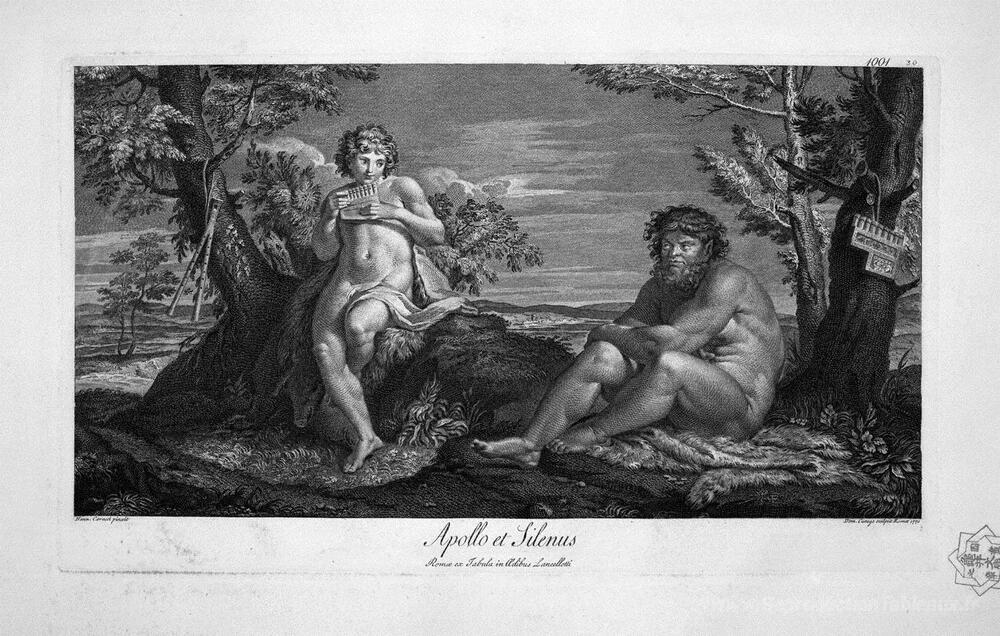 Nous vous proposons une reproduction artisanale sur toile du célèbre tableau 'Apollo et silenus' de Giovanni Battista Piranesi, provenant du Musée de la Reproduction.