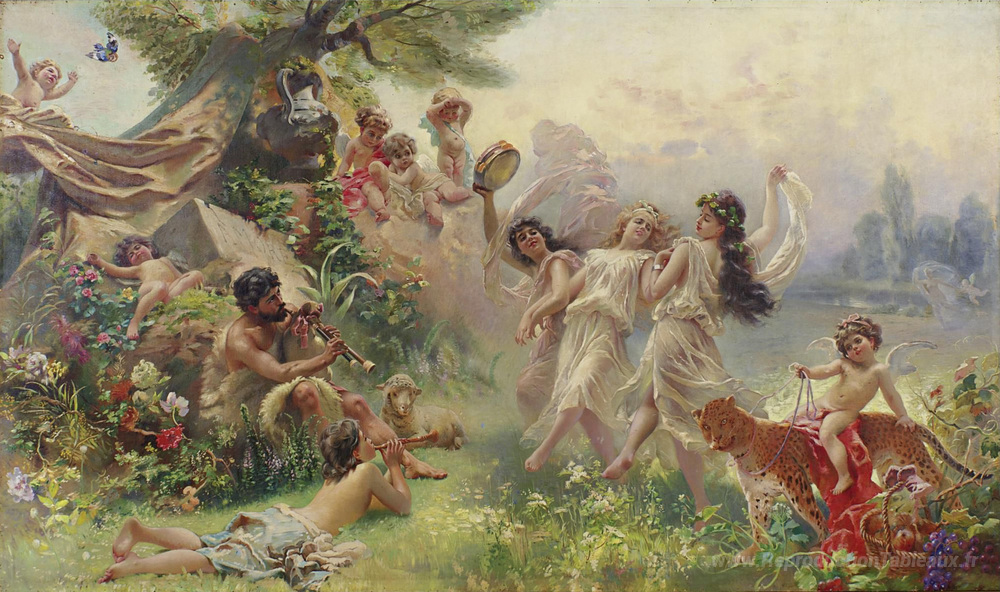 Nous vous proposons une reproduction artisanale sur toile du célèbre tableau 'Arcadia heureuse' de Konstantin Makovsky, provenant du Musée de la Reproduction.