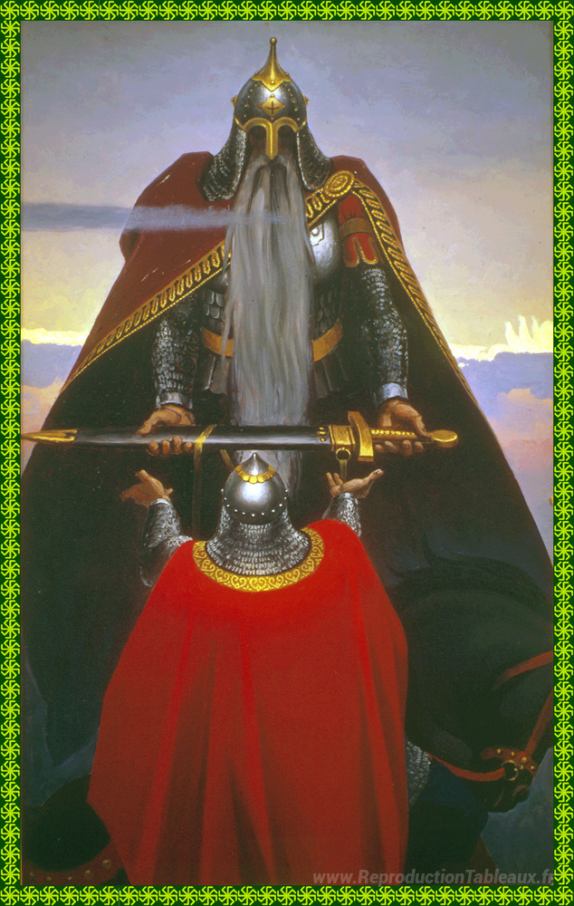 Nous vous proposons une reproduction artisanale sur toile du célèbre tableau 'Cadeau de Svjatogor' de Konstantin Vasilyev, provenant du Musée de la Reproduction.