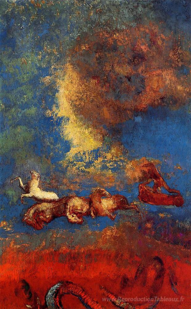 Nous vous proposons une reproduction artisanale sur toile du célèbre tableau 'Chariot d'Apollo' de Odilon Redon, provenant du Musée de la Reproduction.