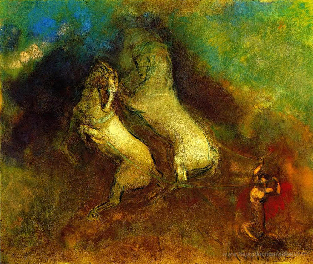 Nous vous proposons une reproduction artisanale sur toile du célèbre tableau 'Chariot d'Apollo' de Odilon Redon, provenant du Musée de la Reproduction.