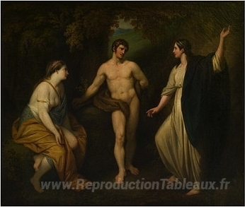 Nous vous proposons une reproduction artisanale sur toile du célèbre tableau 'Choix d'Hercule entre la vertu et le plaisir' de Benjamin West, provenant du Musée de la Reproduction.