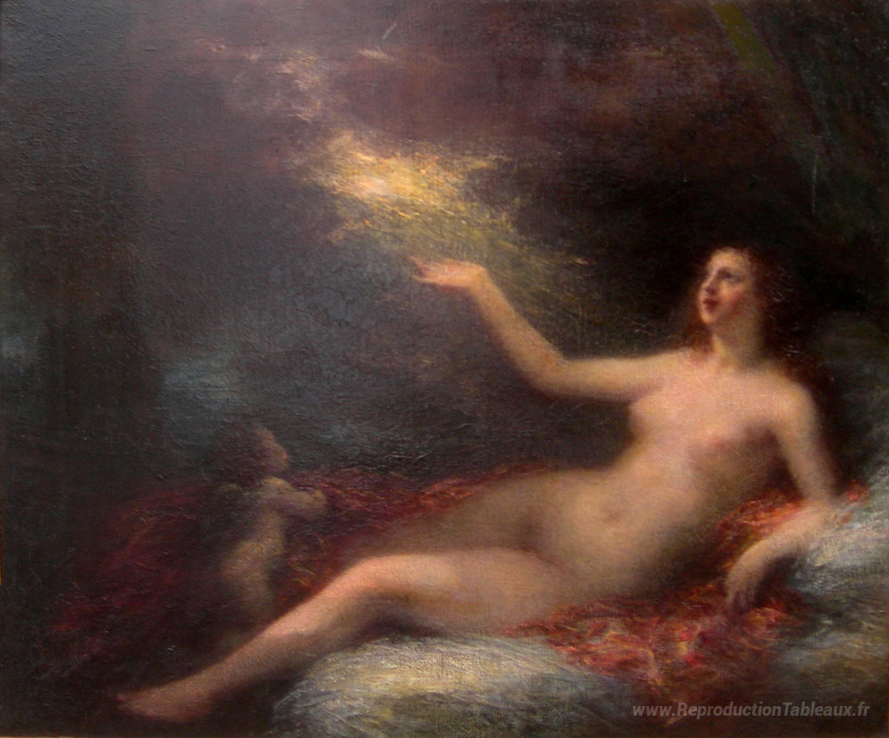 Nous vous proposons une reproduction artisanale sur toile du célèbre tableau 'Danaé' de Henri Fantin-Latour, provenant du Musée de la Reproduction.