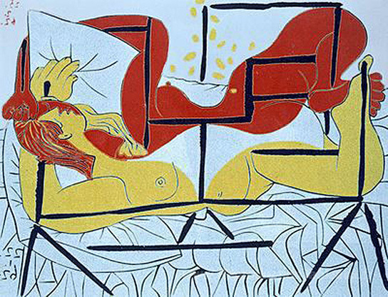 Nous vous proposons une reproduction artisanale sur toile du célèbre tableau 'Danae' de Pablo Picasso, provenant du Musée de la Reproduction.