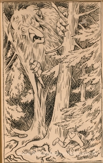 Nous vous proposons une reproduction artisanale sur toile du célèbre tableau 'Foresta Troll - Skogtroll' de Theodor Severin Kittelsen, provenant du Musée de la Reproduction.