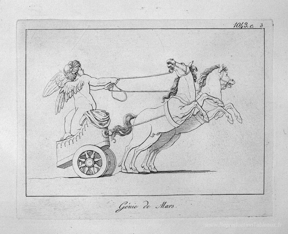 Nous vous proposons une reproduction artisanale sur toile du célèbre tableau 'Génie de Mars' de Giovanni Battista Piranesi, provenant du Musée de la Reproduction.