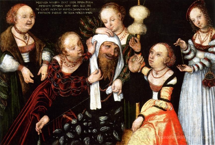 Nous vous proposons une reproduction artisanale sur toile du célèbre tableau 'Héracles et Omphale' de Lucas Cranach the Elder, provenant du Musée de la Reproduction.