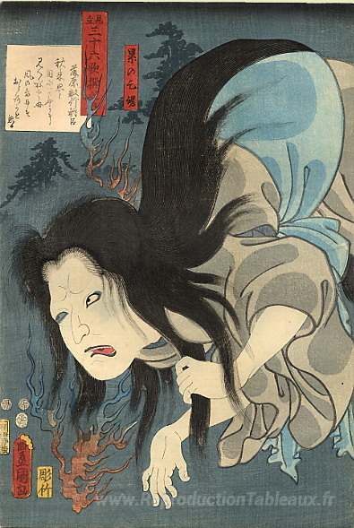 Nous vous proposons une reproduction artisanale sur toile du célèbre tableau 'Le spectre' de Utagawa Kunisada, provenant du Musée de la Reproduction.