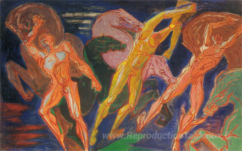 Nous vous proposons une reproduction artisanale sur toile du célèbre tableau 'Les chevaux de Diomède' de Andre Masson, provenant du Musée de la Reproduction.