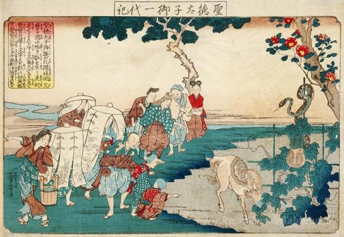 Nous vous proposons une reproduction artisanale sur toile du célèbre tableau 'Les gens s'arrêtent pour admirer la gourde qui est apparue mirac' de Utagawa Kuniyoshi, provenant du Musée de la Reproduction.