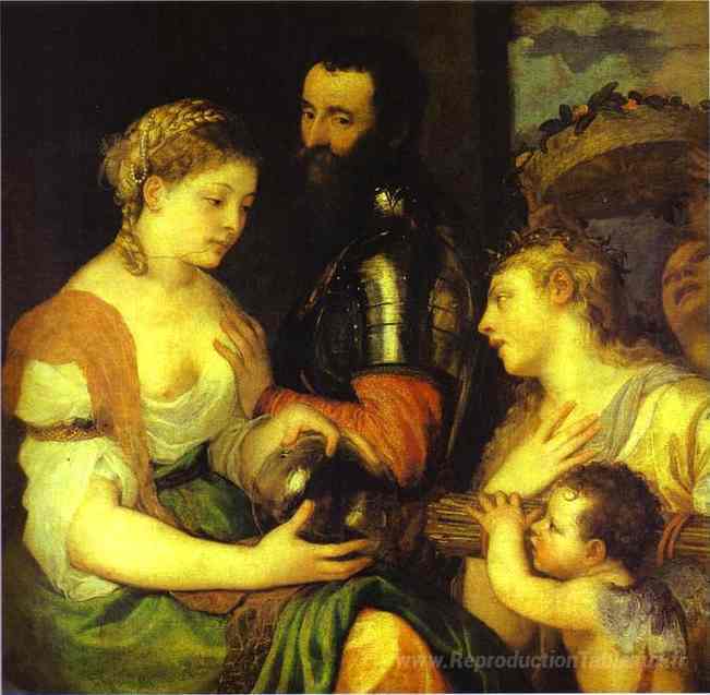 Nous vous proposons une reproduction artisanale sur toile du célèbre tableau 'Mariage avec Vesta et Hymen en tant que protecteurs et conseille' de Titian, provenant du Musée de la Reproduction.
