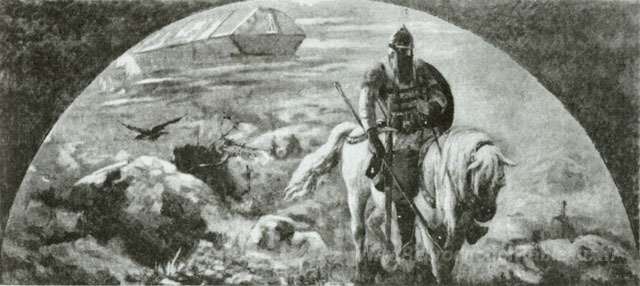 Nous vous proposons une reproduction artisanale sur toile du célèbre tableau 'Matin de Kiev Bogatyrs' de Nicholas Roerich, provenant du Musée de la Reproduction.