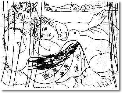 Nous vous proposons une reproduction artisanale sur toile du célèbre tableau 'Minotaure et femme derrière un rideau' de Pablo Picasso, provenant du Musée de la Reproduction.