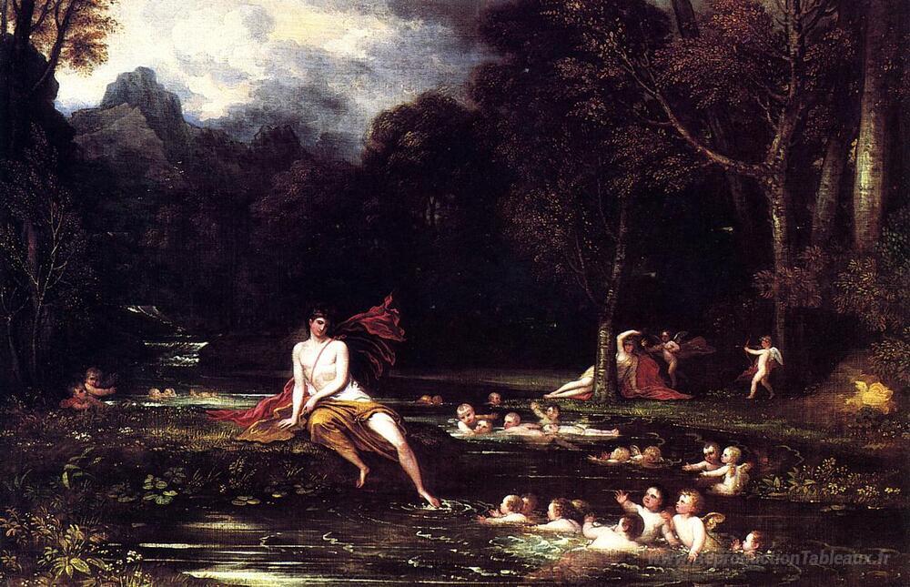 Nous vous proposons une reproduction artisanale sur toile du célèbre tableau 'Narcisse et écho' de Benjamin West, provenant du Musée de la Reproduction.