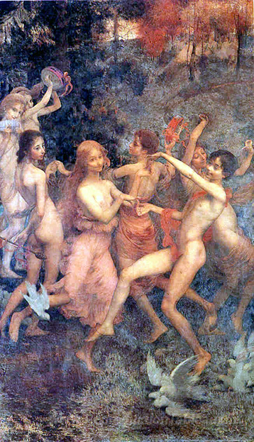 Nous vous proposons une reproduction artisanale sur toile du célèbre tableau 'Oreadas' de Eliseu Visconti, provenant du Musée de la Reproduction.