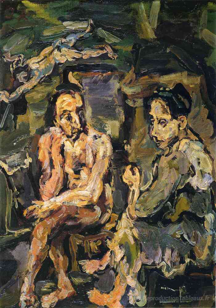 Nous vous proposons une reproduction artisanale sur toile du célèbre tableau 'Orfeus et Euridice' de Oskar Kokoschka, provenant du Musée de la Reproduction.