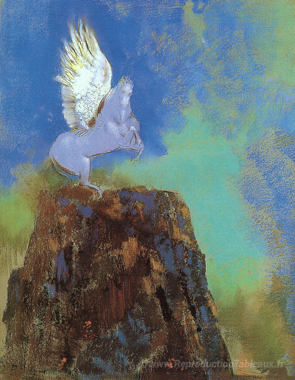 Nous vous proposons une reproduction artisanale sur toile du célèbre tableau 'Pégase' de Odilon Redon, provenant du Musée de la Reproduction.