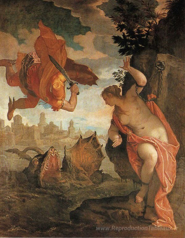 Nous vous proposons une reproduction artisanale sur toile du célèbre tableau 'Persée libérant Andromeda' de Paolo Veronese, provenant du Musée de la Reproduction.