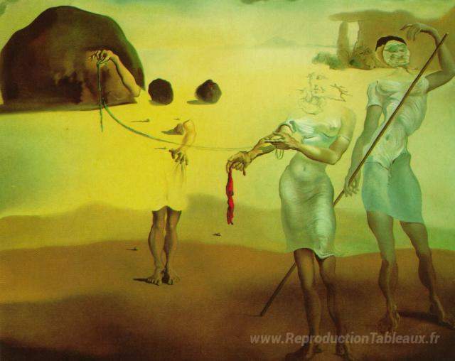 Nous vous proposons une reproduction artisanale sur toile du célèbre tableau 'Plage enchantée avec trois grâces fluides' de Salvador Dali, provenant du Musée de la Reproduction.