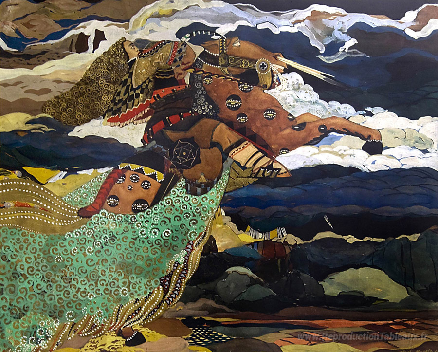 Nous vous proposons une reproduction artisanale sur toile du célèbre tableau 'Roi Marko' de Ivan Milev, provenant du Musée de la Reproduction.