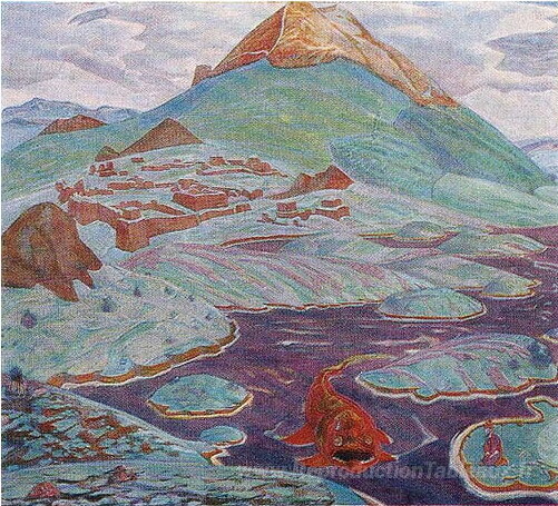 Nous vous proposons une reproduction artisanale sur toile du célèbre tableau 'Sagesse de Manu' de Nicholas Roerich, provenant du Musée de la Reproduction.