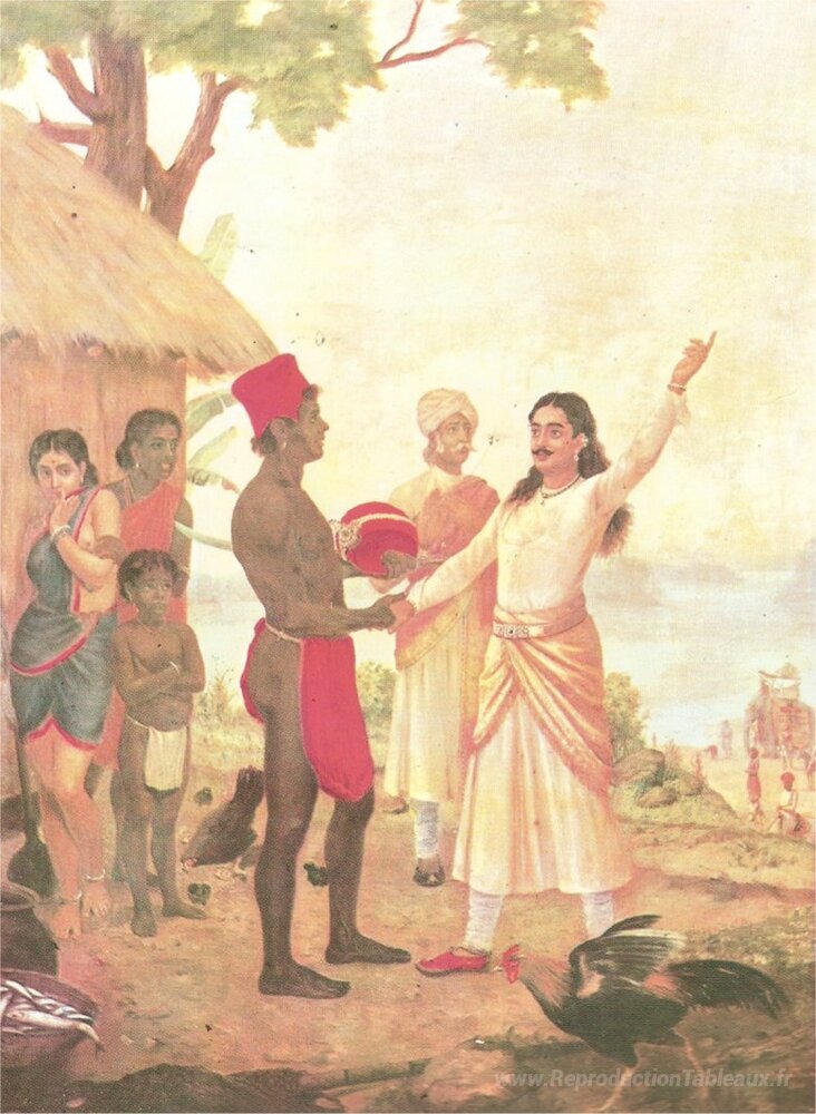 Bienvenue dans notre collection sélectionnée de reproductions d'œuvres d'art à l'huile, où chaque pièce raconte une histoire unique et sublime votre espace de vie. Parmi nos trésors, nous sommes fiers de vous présenter Serment de Bheeshma, une œuvre emblématique du maître indien Raja Ravi Varma. Connue pour son habileté à capturer des moments de grande intensité émotionnelle, Varma fusionne tradition et modernité, offrant ainsi une perspective inédite sur la mythologie indienne.