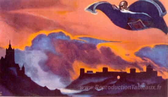 Nous vous proposons une reproduction artisanale sur toile du célèbre tableau 'tapis volant' de Nicholas Roerich, provenant du Musée de la Reproduction.