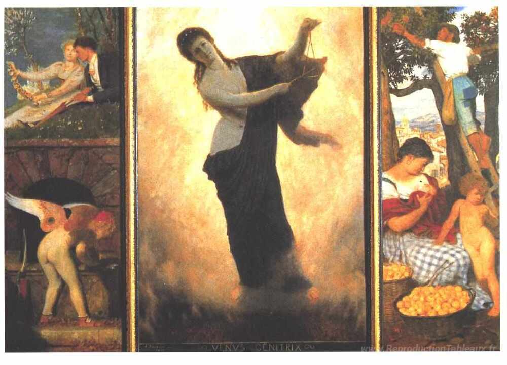 Nous vous proposons une reproduction artisanale sur toile du célèbre tableau 'Vénus génitrix' de Arnold Böcklin, provenant du Musée de la Reproduction.