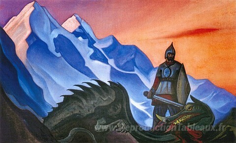 Nous vous proposons une reproduction artisanale sur toile du célèbre tableau 'Victoire (Gorynych le serpent)' de Nicholas Roerich, provenant du Musée de la Reproduction.