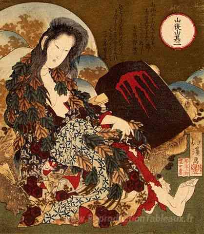 Nous vous proposons une reproduction artisanale sur toile du célèbre tableau 'Yama-uba' de Katsushika Hokusai, provenant du Musée de la Reproduction.