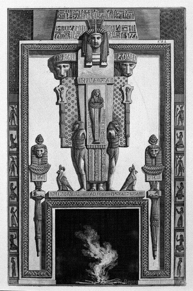 Nous vous proposons une reproduction artisanale sur toile du célèbre tableau 'Le foyer garni par une grande caryatide de style égyptien, à par' de Giovanni Battista Piranesi, provenant du Musée de la Reproduction.