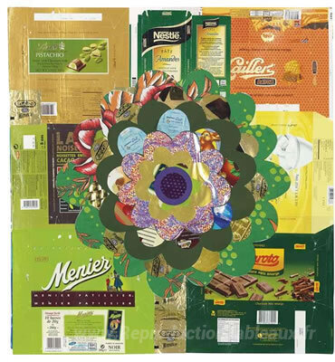 Nous vous proposons une reproduction artisanale sur toile du célèbre tableau 'Aubergine III (vert)' de Beatriz Milhazes, provenant du Musée de la Reproduction.
