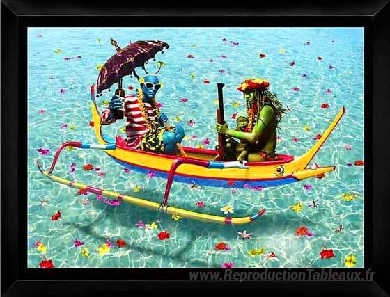 Nous vous proposons une reproduction artisanale sur toile du célèbre tableau 'Canoë jaune' de Ashley Bickerton, provenant du Musée de la Reproduction.