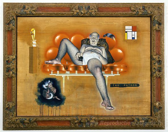 Nous vous proposons une reproduction artisanale sur toile du célèbre tableau 'Le patron' de Ashley Bickerton, provenant du Musée de la Reproduction.