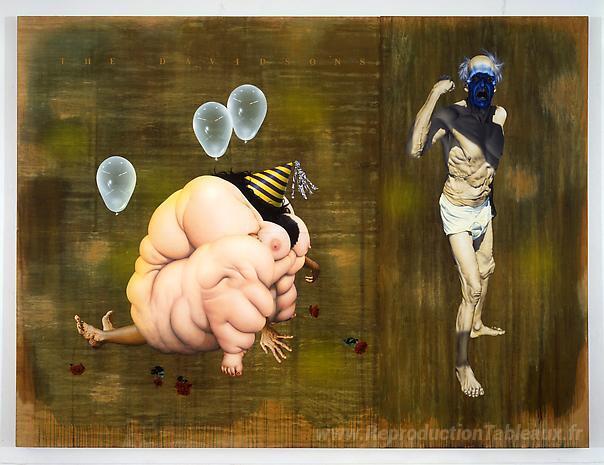 Nous vous proposons une reproduction artisanale sur toile du célèbre tableau 'Les Davidsons' de Ashley Bickerton, provenant du Musée de la Reproduction.