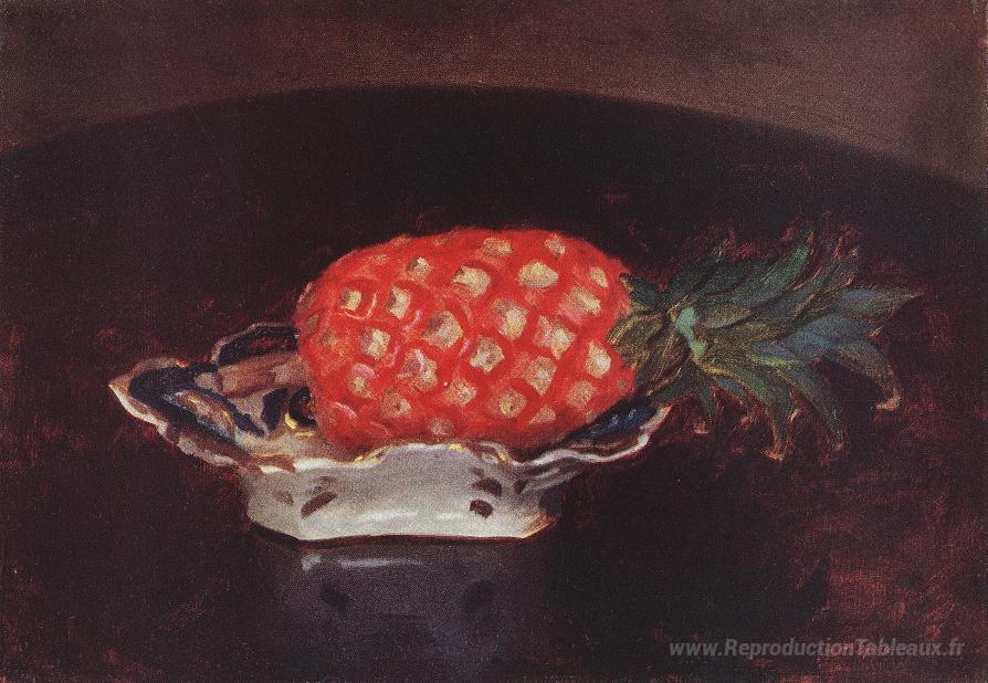 Nous vous proposons une reproduction artisanale sur toile du célèbre tableau 'Ananas' de Karoly Ferenczy, provenant du Musée de la Reproduction.
