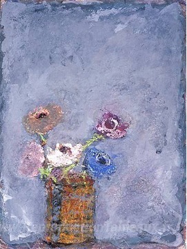 Nous vous proposons une reproduction artisanale sur toile du célèbre tableau 'Anemonie dans la canette' de Gandy Brodie, provenant du Musée de la Reproduction.
